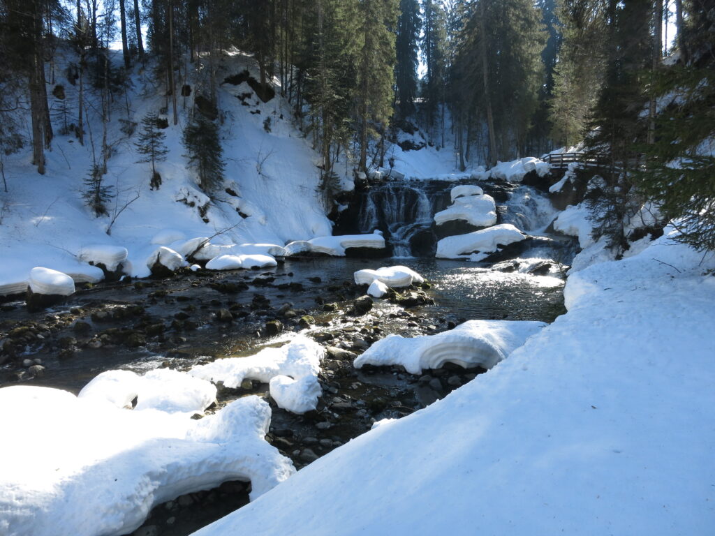 Die Tage von Mika und seiner Familie sind mittlerweile gezählt. Bevor der herannahende Frühling ihn in einen tiefen festen Schlaf schickt, springt Mika mit einem herzhaften Kopfsprung ins kalte Wasser der Breitachklamm. Hoppla … Mika merkt, dass es in einem anderen Zustand, nämlich in seiner ursprünglichen Form, große Freude macht, unterwegs zu sein. Vielleicht wird er ja doch nicht schlafen, sondern als quirliger Wassertropfen weiter seinen Spaß haben. Im nächsten Winter werden er und seine große Familie dann auch wieder zurückkommen. Dann werden wir sie wieder bewundern können, die Eiskristalle und ihre Bauwerke, die so wunderschön und doch so vergänglich sind.