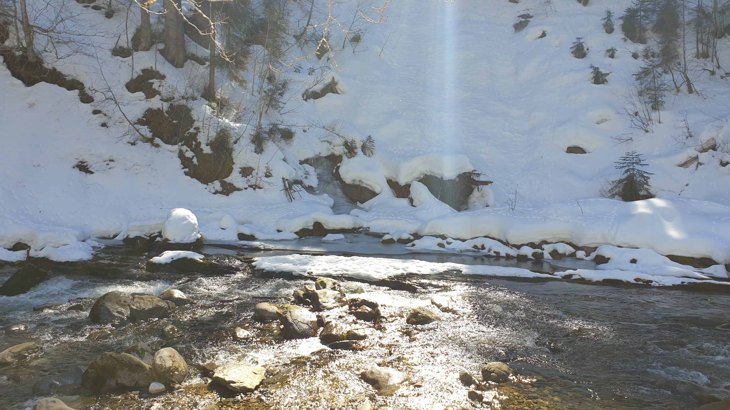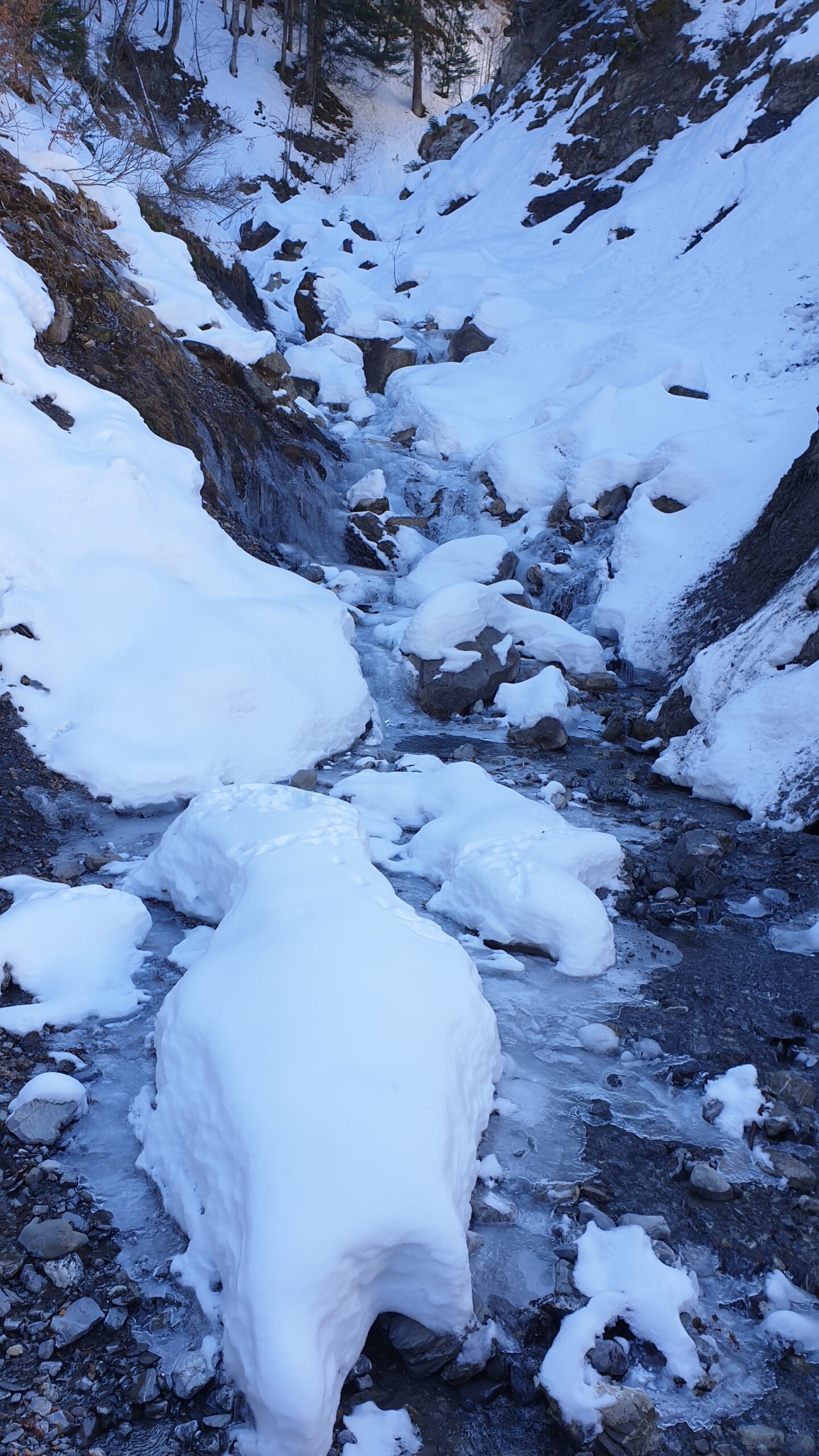 Die Tage von Mika und seiner Familie sind mittlerweile gezählt. Bevor der herannahende Frühling ihn in einen tiefen festen Schlaf schickt, springt Mika mit einem herzhaften Kopfsprung ins kalte Wasser der Breitachklamm. Hoppla … Mika merkt, dass es in einem anderen Zustand, nämlich in seiner ursprünglichen Form, große Freude macht, unterwegs zu sein. Vielleicht wird er ja doch nicht schlafen, sondern als quirliger Wassertropfen weiter seinen Spaß haben. Im nächsten Winter werden er und seine große Familie dann auch wieder zurückkommen. Dann werden wir sie wieder bewundern können, die Eiskristalle und ihre Bauwerke, die so wunderschön und doch so vergänglich sind.