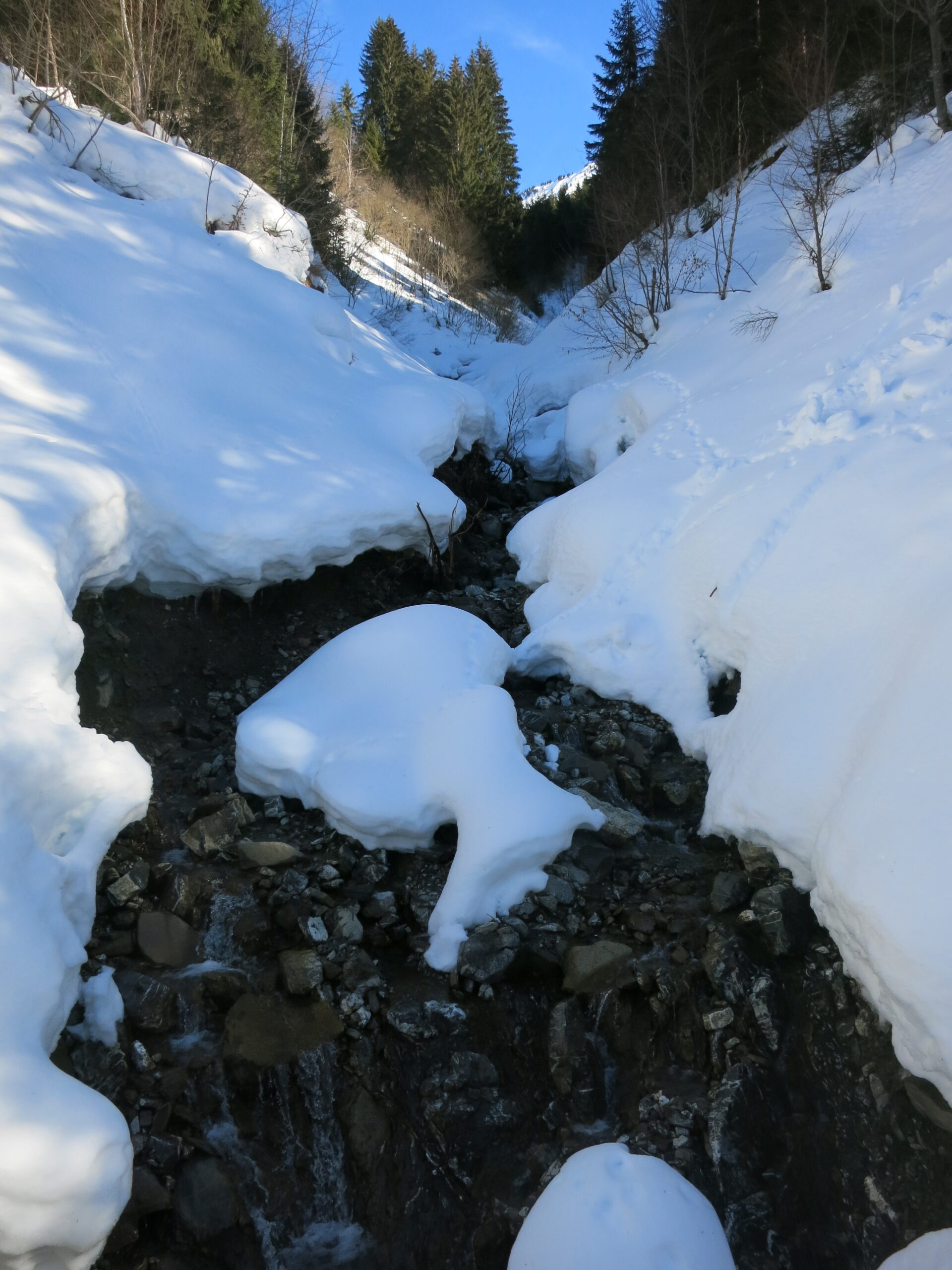 Die zweifellos schönsten Eiskristalle im Kleinwalsertal kann man in der winterlichen Breitachklamm bewundern. Diesem besonderen Naturphänomen haben wir bereits vor Jahren einen eigenen Blog gewidmet und dabei den eingebildeten Eiszapfen kennengelernt: